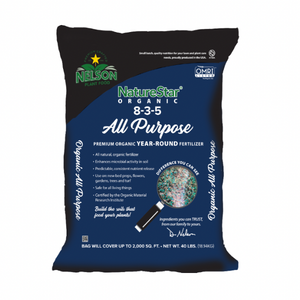 NatureStar All Purpose Organic Plant Food by Nelson Plant Food is a premium, OMRI-listed fertilizer made from 100% organic ingredients. With a balanced 8-3-5 analysis, it provides steady nutrition that supports strong root systems, sturdy stems, and vibrant growth throughout the growing season.